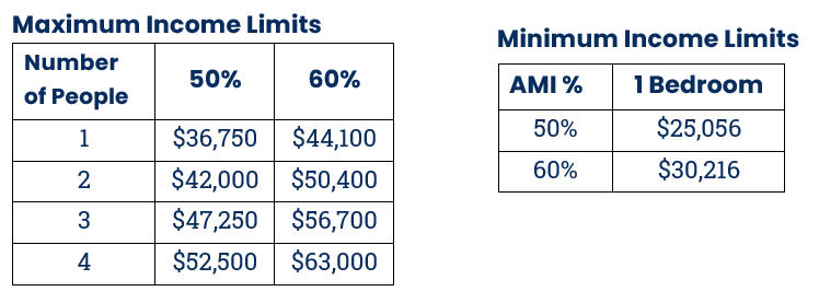 1 BR 50% – $705-$735 per month